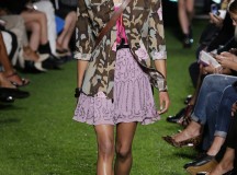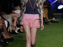 Les motifs camouflage sont rehaussés d’imprimés floraux. Les jupes en mousseline de soie côtoient les robes en jersey girly, les t-shirts en dentelle se voient complétés de vestes et les shorts en jean qui font un clin d’œil aux années folles.