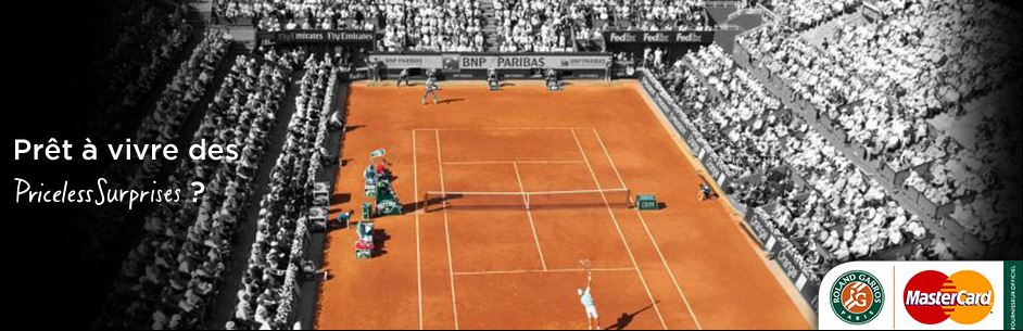 Priceless Paris est un programme de fidélisation lancé par MasterCard en novembre 2012. Il propose à ses membres un accès privilégié à des événements de très belle qualité dans le domaine de l’art de vivre et des loisirs.«Nous sommes heureux de pouvoir intégrer cet événement sportif majeur qu’est Roland-Garros à l’agenda d’expériences Priceless Paris. Au travers de ce partenariat, nous souhaitons offrir à nos clients et aux amateurs de tennis des moments qui n’ont pas de prix et nous avons l’intention de les surprendre tout au long du tournoi », déclare Laurent Mathis, Directeur Marketing France de MasterCard. En complément de l’offre de tickets « last minute », MasterCard proposera sur place de nombreuses Priceless Surprises tout au long de la quinzaine. Une Priceless Machine installée sur le stand de la marque offrira ainsi plus de 6000 surprises et cadeaux : places, possibilité de visiter les coulisses du tournoi, accès à des sessions d’entraînements avec des joueurs professionnels, etc.