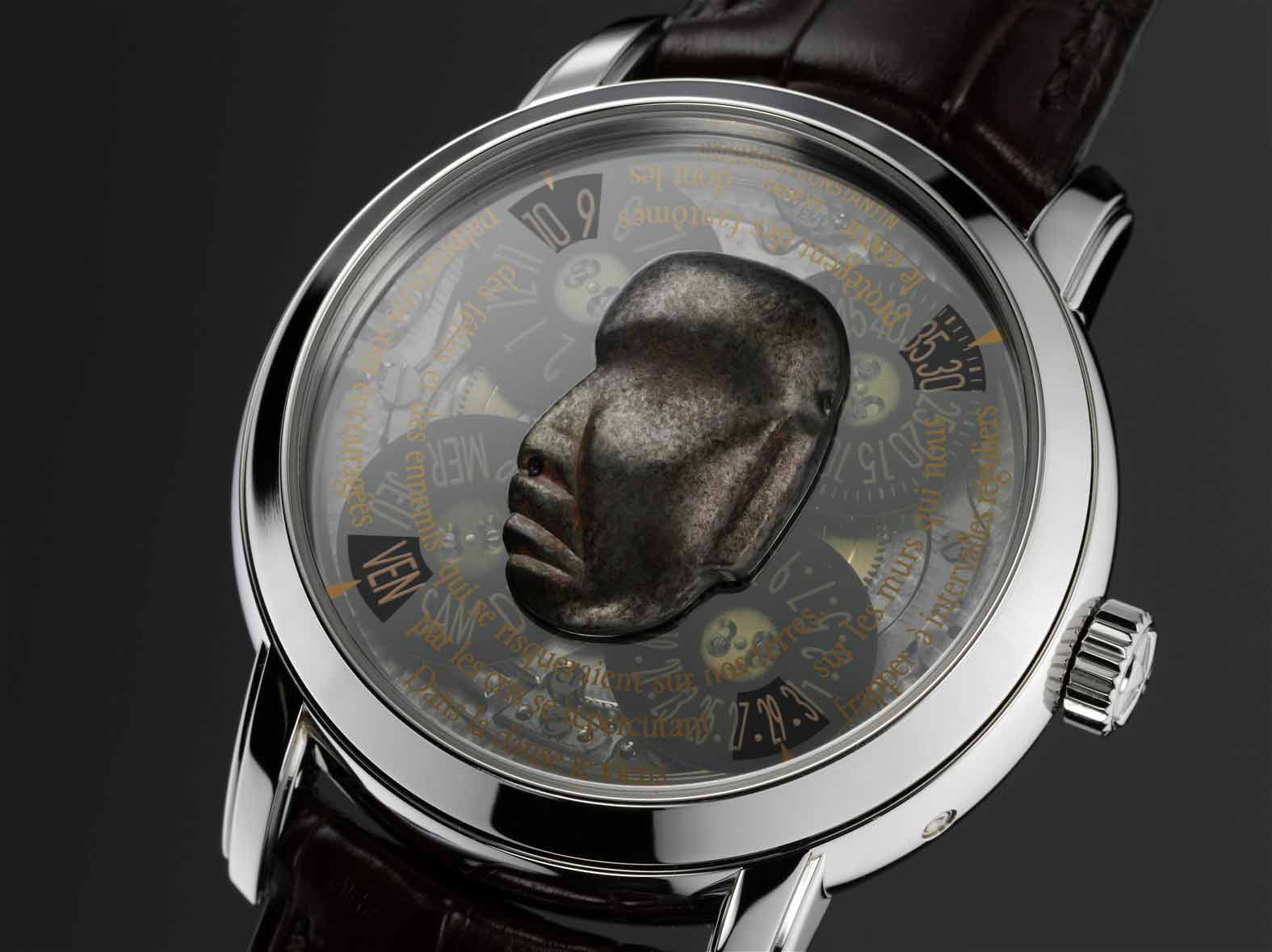 Si l’on met côte à côte une Patrimony, une masque et une Quai de l’Ile, on va retrouver la même qualité de fabrication, de mouvement. Elles diffèrent par leur esthétique et leur concept. La deux aiguilles classiques, la montre qui a une orientation très culturelle avec les masques et la Quai de l’Ile qui est une pièce très contemporaine. Nous ne sommes pas une marque de grand écart, on reste dans ce que l’on sait faire mais on on creuse au sein de notre champ d’action.