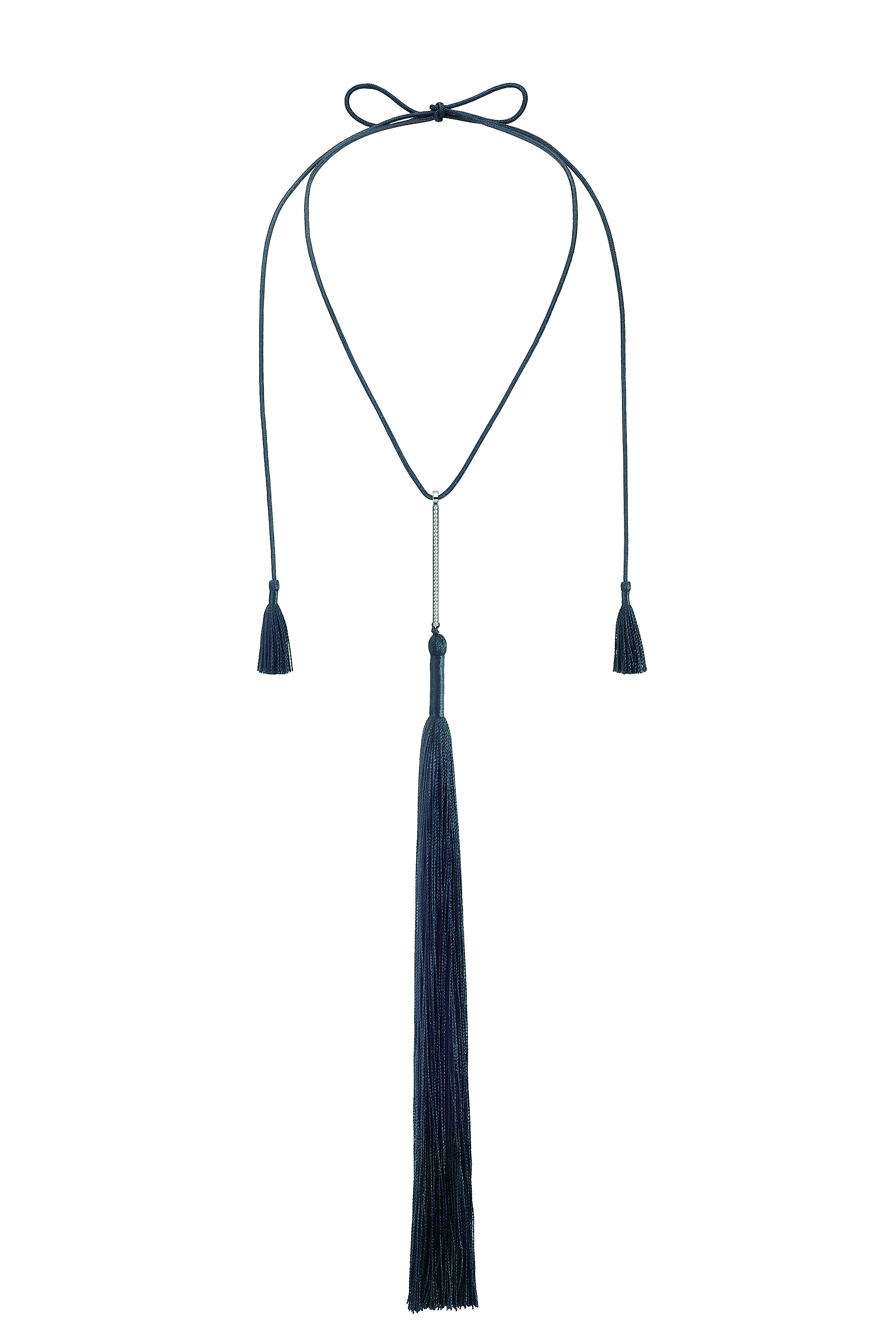 La créatrice a rencontré une femme travaillant dans le passementerie qui aimait son travail. très vite, Dianela a réfléchi à la manière dont elle pouvait intégrer le travail de cette jeune femme dans ses collections. De cett réflexion sont nés plusieurs sautoirs comme La Soie Diamant, modulable qu’on peut nouer en ras de coup ou plus large ou le collier de perles fortement revisité. « Le sautoir révèle des mouvements très féminins chez la femme » nous confie la créatrice.