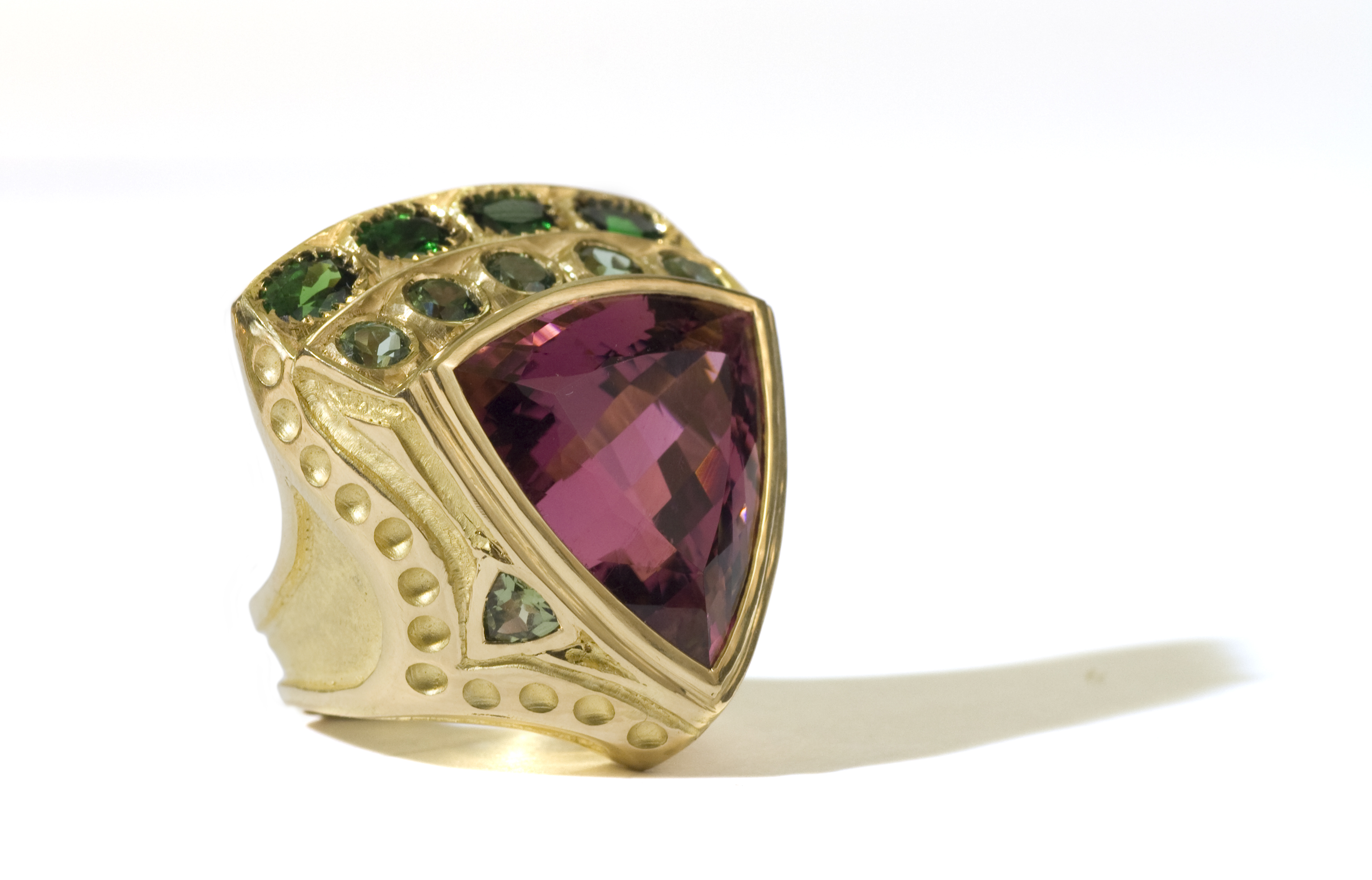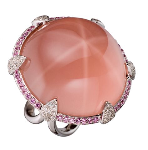 Quant à la magnifique bague en calcedoïne rubellite, c’est également « une statue qu’on peut poser sur une table » nous rappelle t’elle.