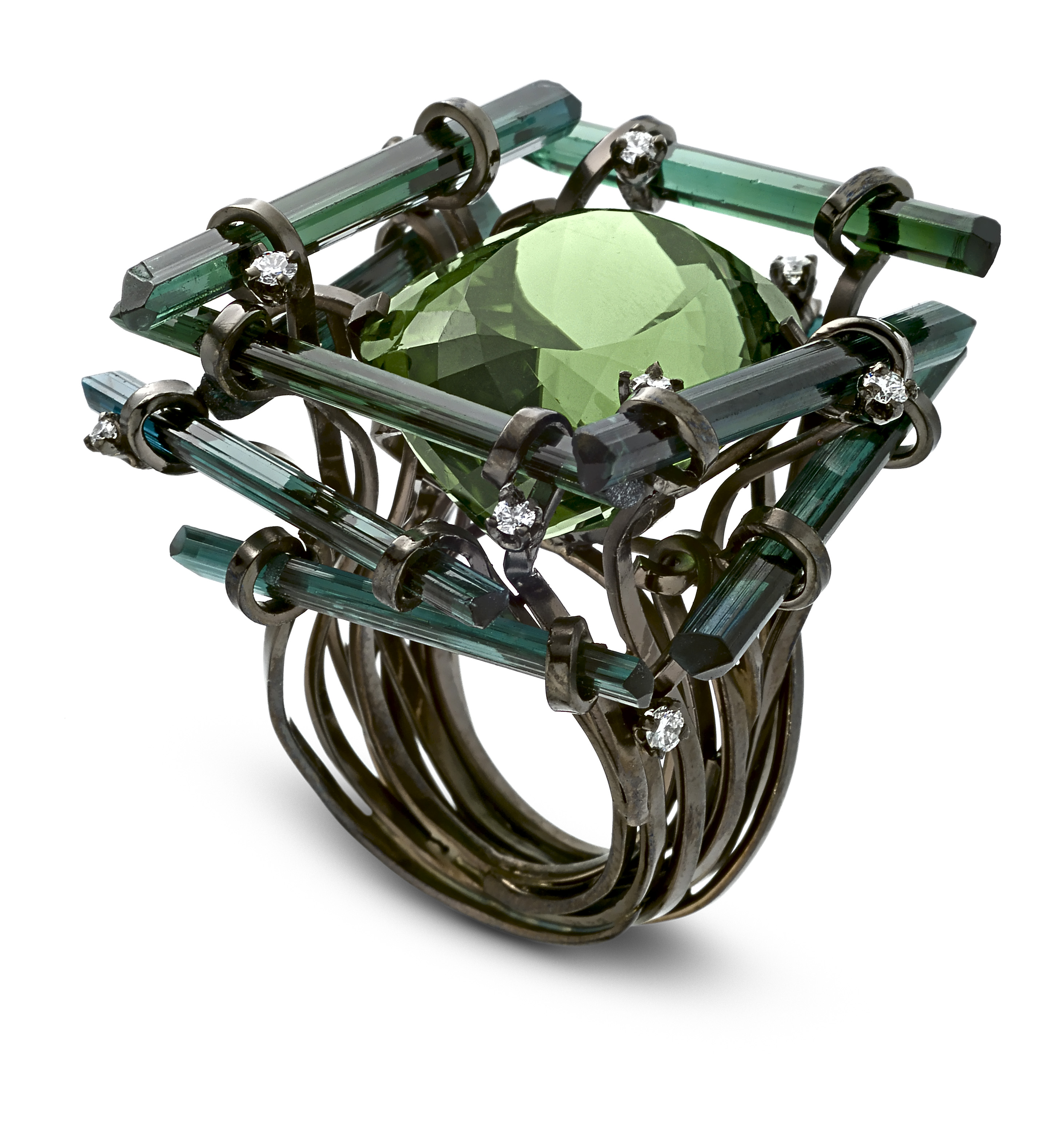 Mélangeant l’or mat et l’or brillant, Hélène met le métal au coeur du bijou et utilise des gemmes peu exploitées (spessartites, tsavorites, iolites, morganites, rubélites, tanzanites…).