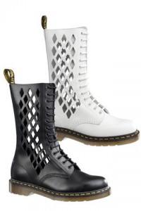 Il boot con 14 occhielli, caratterizzato dal gambale traforato a laser, si mantiene conforme allo stile del marchio, conservando un plasticismo d’effetto, tipico dell’anfibio per eccellenza del mondo della calzatura.