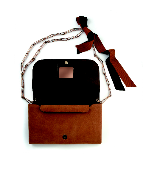 Un talent partagé entre mode et art, contemporain et fonctionnel, sensuel et subtil ; ce boudoir nomade se revendique à travers des pochettes. Pour chaque moment de la journée convient sa pochette. De jour, cocktail ou grand cabas, 3 tailles pour Ragazze Ornamentali qui se décline en 4 matières et 2 tons ! Pour le jour ? Un mélange de veau et buffle, du satin de pure soie pour le cocktail et, du croco pour la pièce ultime. Les tons sont inspirés du maquillage ; rose poudré et khôl, une nuance « or rose ». La pochette prend le rôle qu’on lui donne, à la guise de chaque femme, sac ou pochette ! Munie d’un gros-grain omniprésent et d’un miroir intérieur gravé et personnalisé, les détails rappellent l’élégance, la féminité et apporte une touche suprême du raffinement complice pour accompagner le jardin secret de la femme et ses confidences…
