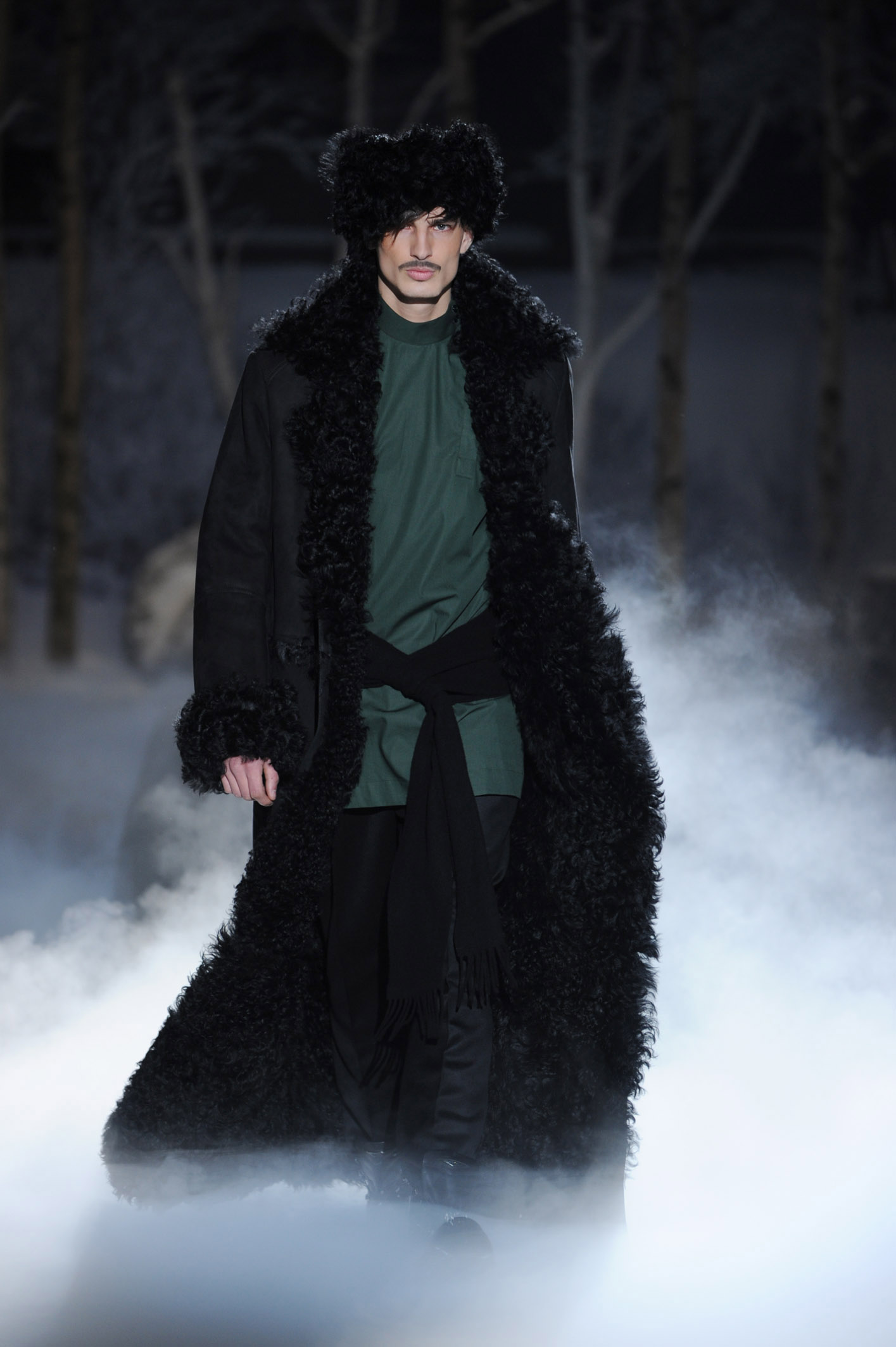 I capospalla in montone e panno schiacciato si fanno ampi, oversized, per affrontare il gelo delle steppe; le spalle sono importanti, i dettagli rubati dalle divise della Prima Guerra Mondiale.