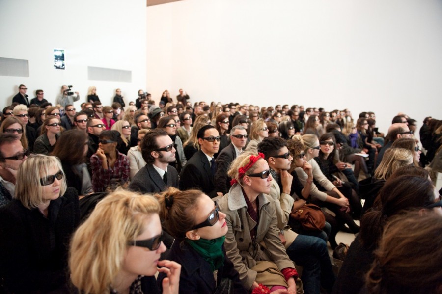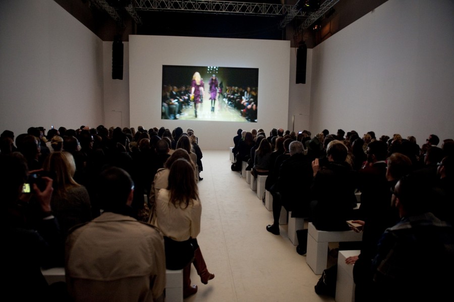 Paris, 23 février 2010, 17h locales. Un parterre de 300 invités chausse ses lunettes 3D, en même temps que d’autres à New York, Dubai, Tokyo et L.A., pour assister en direct au défilé Burberry Prorsum Automne/ Hiver qui se déroule à Londres. Des rideaux de pluie virtuelle et sonore nous feraient presque vérifier que nous n’avons pas oublié notre trench pour rester au sec.