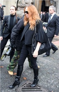 Les funérailles d’Alexander McQueen se sont déroulées ce jeudi (25 février 2010) à l’église Saint-Paul à Knightsbridge, au centre de Londres dans le district de la Cité de Westminster. En plus de sa famille et ses proches, les mannequins Kate Moss et Naomi Campbell et la styliste Stella McCartney ont tenu à rendre un dernier hommage au couturier, retrouvé mort le 11 février au matin à son domicile londonien. Cette cérémonie a été marquée par la présence d’une jeune femme en robe courte noire assortie d’une traîne et un voile de dentelle lui recouvrait le visage. Plusieurs médias ont affirmaient qu’il s’agissait de Lady GaGa, or le site internet de MTV révèle qu’il s’agit de l’icône de la mode londonienne, Daphne Guinness, héritière de l’empire du même nom et une grande amie du défunt couturier.