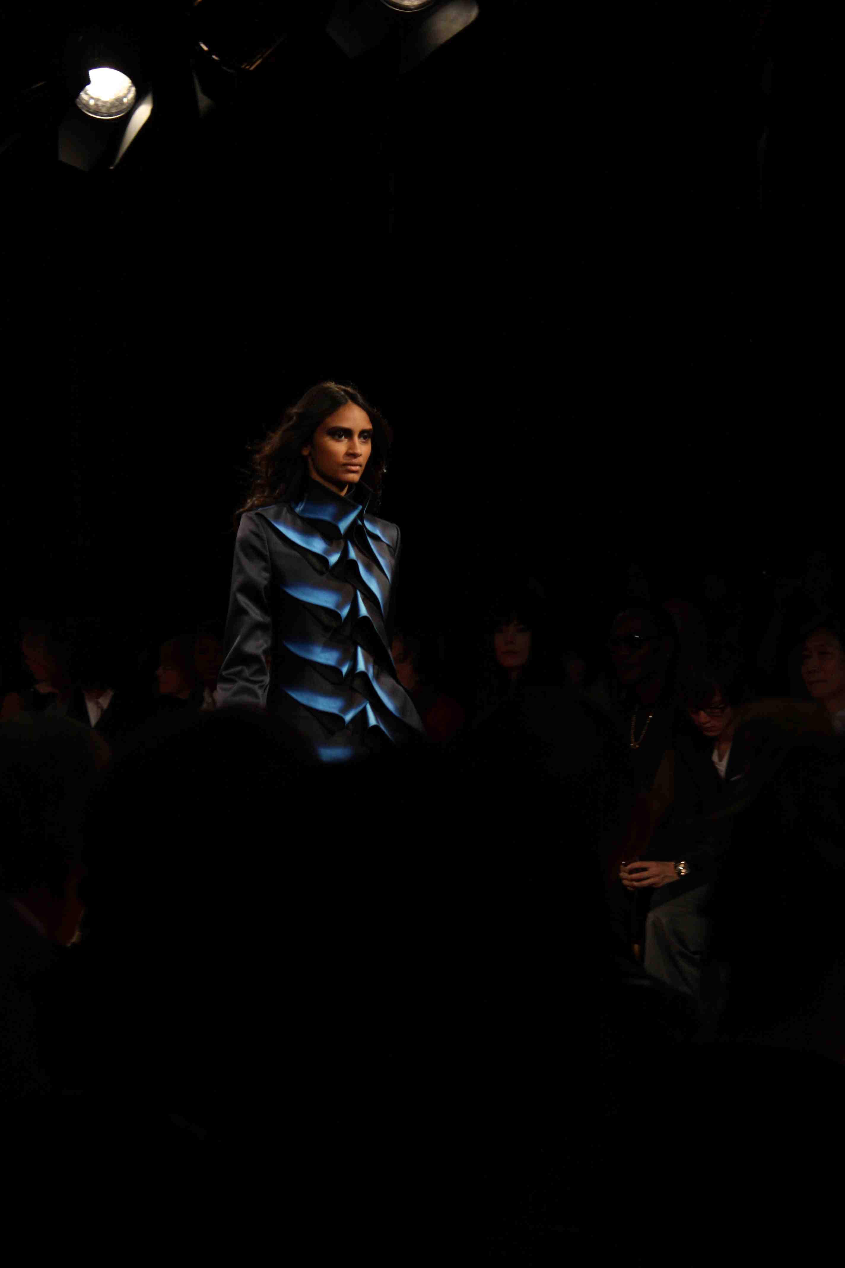 Les silhouettes slim vs jupes, manteaux oversize rehaussées de sacs xxl mi peau – mi renard transforment nos citadines en amazones des pavés. L’hiver prochain sera sauvage et coloré. En plus des bébétes teintées de couleurs vives, la créatrice n’a pas hésité à faire un gros travail sur les plissés artistiques satinés des vestes ceintrées à longueur redingotes recouvrant les leggins visiblement toujours d’actualité. On retrouve en plus de ces peausseries, des ceintures corset en cuir à triple ou quadruple bride, des épaulettes démesurées et des apparitions de nude entre les couches artistiques de vêtements.