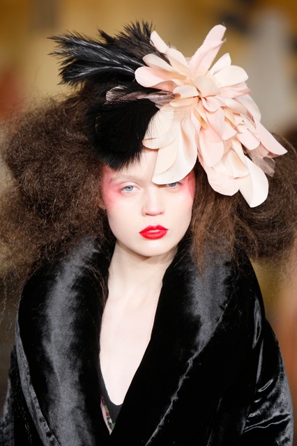On tombe en émoi devant les chapeaux en fleurs piqués, et on se dit qu’à défaut du fusil, la fleur se porte comme un charme au sein d’une chevelure.