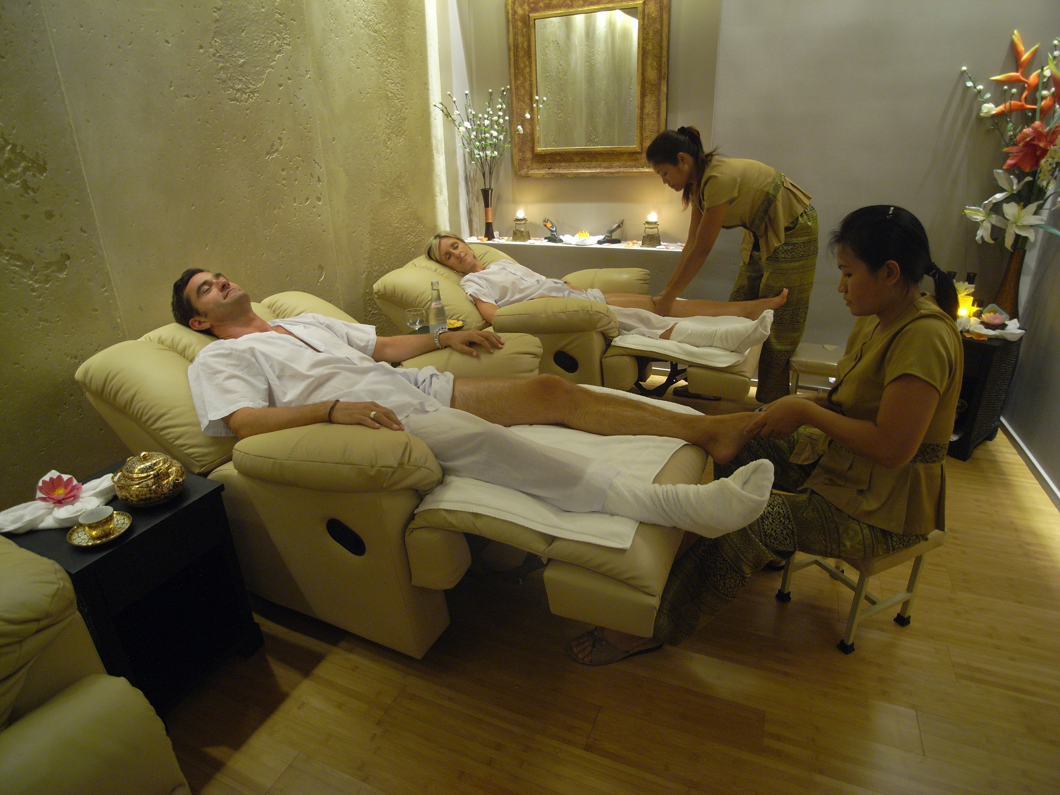 Pour une seconde prestation, choisissez entre le massage aux huiles essentielles, à même la peau, doux et relaxant, ou laissez-vous surprendre par la découverte du massage thaïlandais traditionnel: plus «musclé», il a des vertus à la fois relaxantes et réénergisantes, en profondeur et à long terme, et ne néglige aucune articulation ni point de tension du corps.