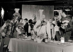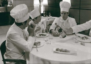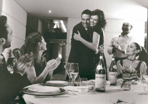 Pour cette campagne, un fil rouge : le plaisir et le partage autour d’un repas. Elliott Erwitt nous emmène d’abord au cœur de la Lombardie à Milan, pour faire connaissance avec le restaurant deux-étoiles Michelin Cracco. Du dîner des chefs précédant le service du soir à un anniversaire surprise organisé dans le restaurant, le photographe capture ses instants unique de bonheur et de convivialité. Puis il nous emmène dans les coulisses d’un tournage de film, probablement un péplum puisque les protagonistes sont habillés dans le plus pur style Rome Antique. Un grand loft contemporain est l’occasion pour Elliott Erwitt de prendre le pouls d’une société contemporaine cosmopolite autour d’un repas où se sont les hommes qui cuisinent. Et enfin Elliott Erwitt photographie une famille élégante s’apprêtant à partager à Boccadasse près de Gênes un repas toute en convivialité.