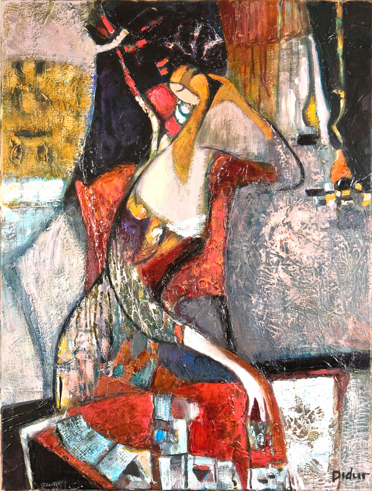 L’exposition, à découvrir du 20 avril au 31 mai 2010, est l’occasion d’admirer les tableaux de style très contemporain de l’artiste dont les influences de Modigliani viennent côtoyer celles de Picasso. Chaque tableau est long à faire, Galya Didur travaille par couches successives les couleurs pour créer son propre style figuratif fait de couleurs profondes et de traits rectilignes. Elle met énormément d’énergie dans ses créations qui en deviennent très lumineuses comme pour exorciser le trop plein d’énergie que chaque toile accumule.