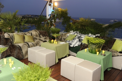 Et lorsque Muzo International s’associe avec la Maison Chopard dans l’endroit le plus glamour de la planète, cela donne une soirée inoubliable sur le thème « vert émeraude », permettant définitivement à la Maison Chopard, partenaire officiel du Festival de Cannes, d’obtenir la Palme d’Or 2010 des soirées d’exception. C’est sur la magnifique terrasse du Chopard Lounge, située au 7ème étage de l’hôtel Martinez que s’est déroulée le 19 mai 2010 la « Green Party » de Chopard et Muzo International. La terrasse, transformée en une jungle dense et verdoyante, a accueilli également certaines des plus belles belles pierres de Muzo international. C’est dans ce cadre enchanteur que les convives ont pu déguster un menu raffiné, spécialement conçu pour l’occasion et qui a ravi plus d’un palais : émulsion multicolore de légumes verts en fraîcheur à l’huile d’olive et copeaux de parmesan, risotto aux pointes d’asperges vertes ou encore crevettes et pulpe d’avocat aux saveurs indiennes tout en savourant les champagnes Boizel ainsi que les vins du Châteaux de Cayx, ou en sirotant les délicieux cocktails Grey Goose.