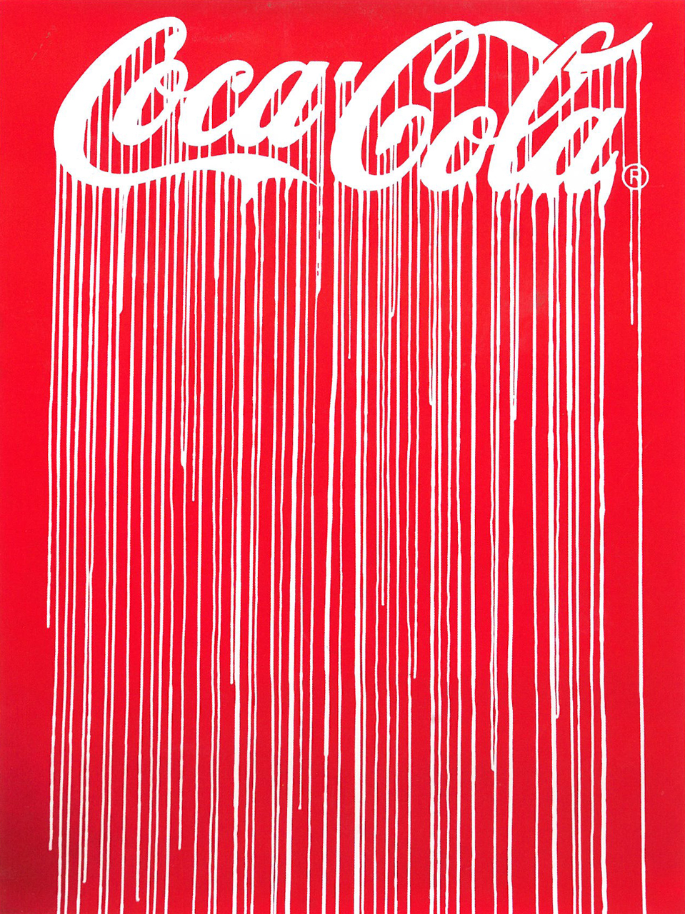 Liquidated Coca-Cola de ZEVS, l’un des pionniers du street-art français, rend « hommage » à l’hégémonie dégoulinante de cette boisson mondialement connue qui véhicule un véritable « American way of life » à travers l’image d’une marque forte. Image que l’artiste n’hésite pas à liquider.