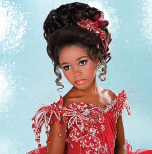 La première fois où j’ai découvert ce monde par moi-même, je me suis rendue compte qu’il y avait différents types de concours de mini-reines de beauté. Les concours de beauté naturelle avec très peu de maquillage, des robes toutes simples où il est plus question d’être une jolie fille et puis il y a les concours de catégorie supérieure appelés High Glitz et ce sont ceux-là qui m’intéressent. Dans ces concours, tout y est exagéré, les coiffures, le maquillage, les tenues, ce qui est finalement très américain. Elles ont même des postiches pour les cheveux. J’aime comme beaucoup la beauté, les cosmétiques, tous ces trucs de femmes, et je me sens concernée par la presqu’obligation qu’ont les femmes d’essayer de se conformer aux canons de beauté de notre société mais là elles essaient d’atteindre quelque chose qui est finalement hors de portée. La barre a été placée définitivement trop haut.