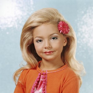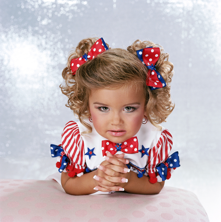 Dès leur plus jeune âge, ces petites filles sont ultra apprêtées dans une course perpétuelle à une perfection illusoire. Maquillage appuyé, prothèse dentaire, faux ongles, chevelure factice voire décolorée pour correspondre au fantasme de la fille parfaite, rien ne leur est épargné. Et elles s’exécutent, élevées pour gagner et être les plus belles, elles jouent très facilement avec l’objectif dans un appel à la séduction malsain et désespéré. Poupées désincarnées, victimes consentantes, l’enfant existe toujours derrière cette quête absurde d’une beauté abstraite. Un enfant écrasé par un rêve d’adulte, une projection à outrance, très souvent sous pression, qui les font devenir des portraits sans âme. A les voir, l’expression « petites filles modèles » prend tout son sens.