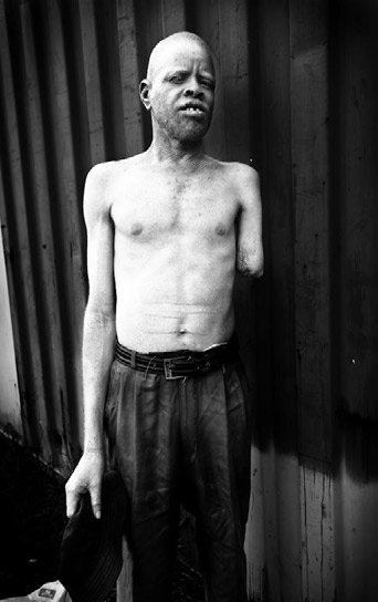 Depuis 2007, plus de 47 personnes souffrant d’albinisme ont subi des amputations à la machette de jambes ou de bras. Les membres sont ensuite vendus aux sorciers, un corps entier d’albinos pouvant valoir jusqu’à 10 000 $. Franck Vogel a choisi le noir et blanc accentuant les contrastes et renforçant parfois l’impression de malaise engendrée par le sort réservé à cette minorité, ayant souvent des problèmes de vue, condamnée la plupart du temps au chômage et à la pauvreté quand elle ne décède pas d’un cancer de la peau.