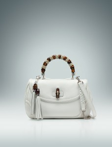 Frida Gianinni, la directrice artistique de Gucci, revisite cette saison ce classique, en proposant un New Bamboo confectionné de la même manière que l’original. Proposé, outre dans sa forme historique, dans de nouvelles dimensions plus adaptées à notre mode de vie du 21ème siècle, le New Bamboo requiert 13 heures de travail pour assurer la perfection de ses détails. Bords en cuir surélevés lisses et brillants sur l’extérieur, anse en bambou dotée dorénavant d’une lanière en cuir et d’une seconde lanière chaîne en métal tendue avec une base tressée, pompons frangés, sont autant de détail qui font la différence et qui perpétuent la formidable histoire d’amour des femmes et du sac Bamboo.