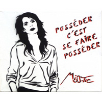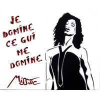 Artiste, plasticienne et poète, elle est une femme engagée qui marque de son empreinte les murs de la ville. Elle est partout sur les murs, elle devient les murs. D’abord sauvages, ses œuvres sont maintenant exposées dans les plus grandes galeries de la ville. Son moyen d’expression est simple, inimitable mais efficace et inégalé : le noir et le rouge, une image et un texte. Elle s’expose, se met en scène et prend la parole. Ses textes sont forts fait de jeux de mot portant la cause des femmes avec humour et détournant les stéréotypes des images de séduction: « Faire le mur, jouer la fille de l’art« , « Il fait un temps de chienne« , « Tu ne perds rien pour m’attendre« , « Posséder, c’est se faire posséder« , « Je domine ce qui me domine« , « Le masculin l’emporte mais où ?, « Cueillir l’Eros de la vie »…