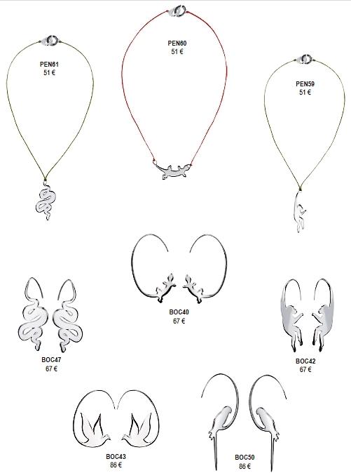 Aujourd’hui la marque lance sa première collection en argent massif. La collection se décline sous différentes thématiques : animaux, danseuses et formes graphiques.