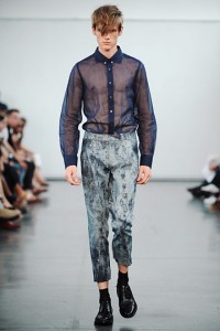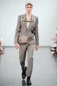 Devant une assemblée composée de quelques personnes aux styles des plus extravagants, le designer français a dévoilé une collection tout en calme et sérénité mettant à l’honneur les tonalités minérales et mates, tels que le sable, les galets, les pierres érodées et le lichen. Les silhouettes filiformes se succèdent, portées par une composition musicale signée Dani Siciliano. L’équation développée par Garspard Yurkievich est on ne peut plus claire: un subtil mélange entre le casual et le tailleur. Aussi bien apprêté pour se rendre en soirée ou pour partir en trekking, toute l’élégance du vestiaire homme pour l’été prochain résidera dans cette harmonie entre le style citadin et le style décontracté.