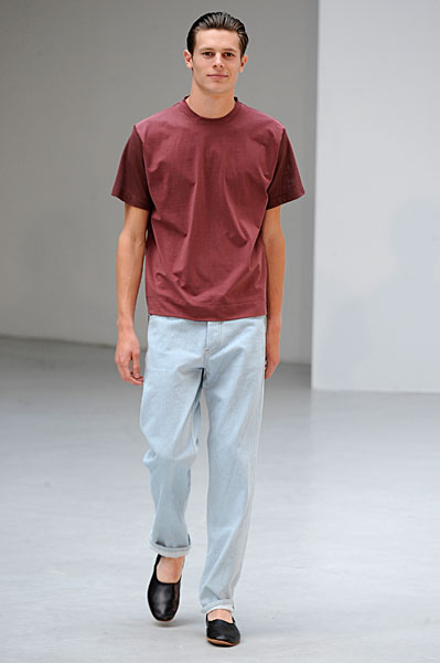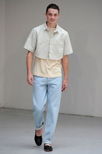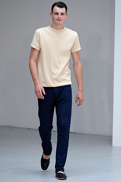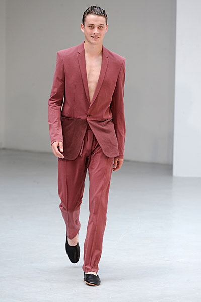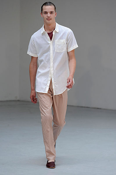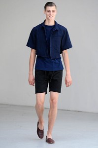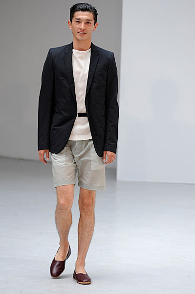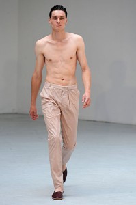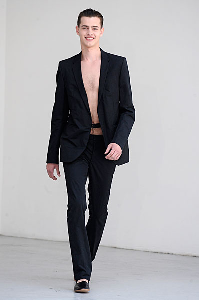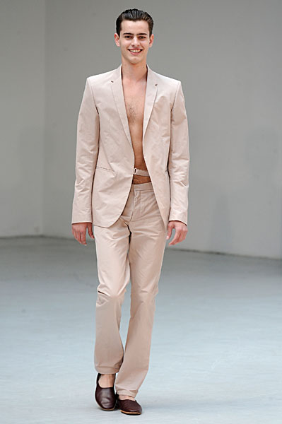 L’homme Petar Petrov 2011 sera avant tout souriant et élégant en toutes circonstances. Son vestiaire passera du pantalon à pinces au short en toute sobriété, presque toujours dignement accompagné de tee-shirts unis. Il privilégie les silhouettes tailleur longilignes où l’ensemble veste à un bouton – pantalon à pinces rime sobrement avec un tee-shirt uni ou peut se suffire à lui-même pour un effet des plus détonants. Beaucoup de silhouettes seront torse nu pour un homme assumant son corps.