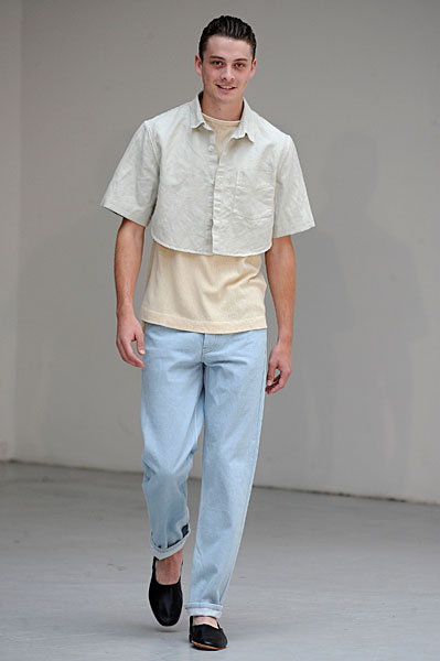 Le styliste bulgare nous propose une collection en apparence traditionnelle, aux coupes minimalistes maîtrisées dans laquelle il met en avant le short. Mais ce n’est qu’une apparence tant il a ponctué sa collection de petites touches originales ancrant ainsi son homme pleinement dans son époque. Les vêtements sont en coton ciré ou traité et ont parfois un aspect froissé travaillé.