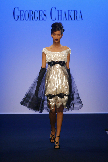 Pour l’hiver 2010-2011, le créateur libanais remet au goût du jour les robes d’apparat en s’inspirant à la fois des soirées d’antan hollywoodiennes et des silhouettes des années 50 dans une version très moderne d’une nouvelle Gilda. Robes bustier courte ou long fourreau, le créateur met tout en œuvre pour faire de chaque femme une nouvelle diva, contemporaine et chic, glamour en toutes circonstances. Longues ou courtes, les robes de George Chakra n’ont qu’un but, magnifier la femme. La collection alterne des fourreaux très hollywoodiens avec des robes courtes dans un style années 50 réinterprété que n’aurait certainement pas renié Audrey Hepburn. Marchant la tête haute dans une robe écrin, la femme George Chakra sera une femme forte, d’allure aristocratique.