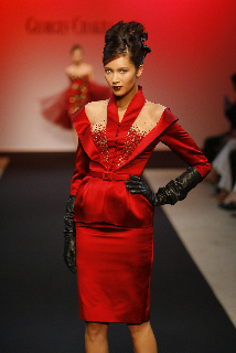 George Chakra a, à travers cette collection, prouvé une nouvelle fois son goût du détail et du travail des matières et nous propose sa vision personnelle de « l’architexture« . Volants, plissés, drapés hollywoodiens, volutes asymétriques, arabesques et entrelacs de brocarts et broderies, surjupes, traînes majestueuses rythment des silhouettes ultra glamour. Les coupes sont précises, soignées, les drapés judicieusement placés pour mettre en valeur à chaque mouvement les courbes d’une femme pleine de vie.