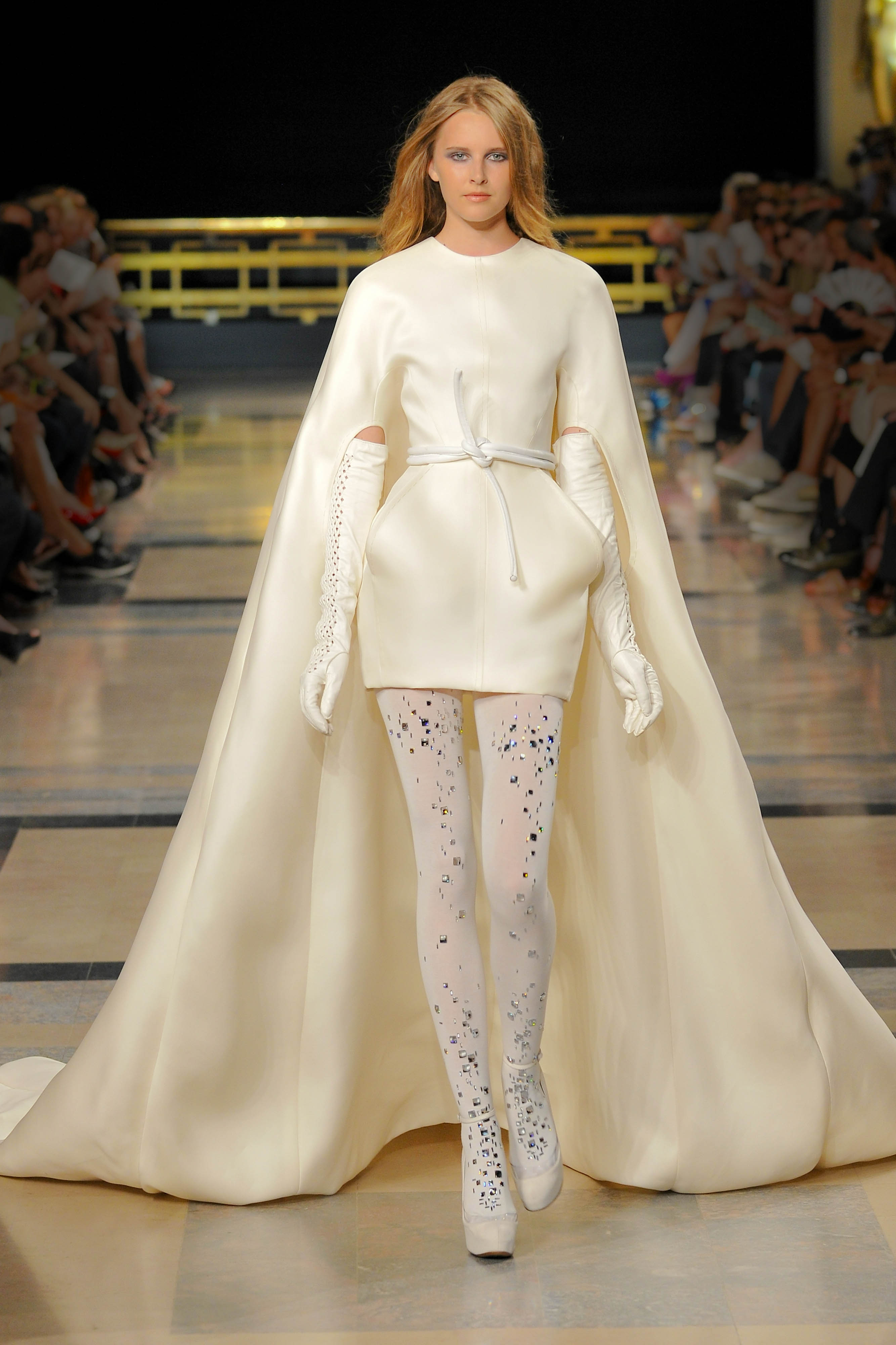 La cape a ensuite trouvée naturellement sa place pour envelopper chaque mouvement. Du tailleur couture, à la robe de cocktail courte en passant par la robe du soir longue, la cape est de rigueur. Elle remplace même la traîne de la mini-robe de mariée.