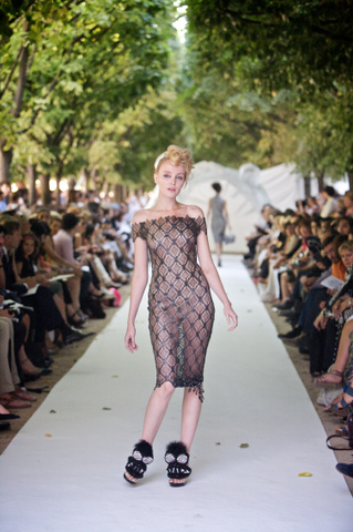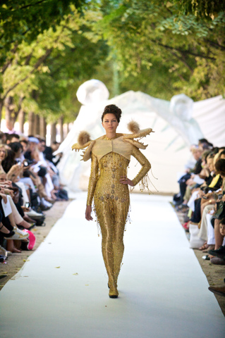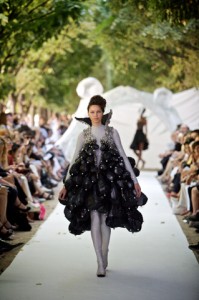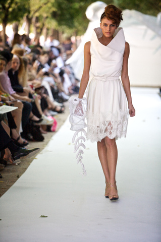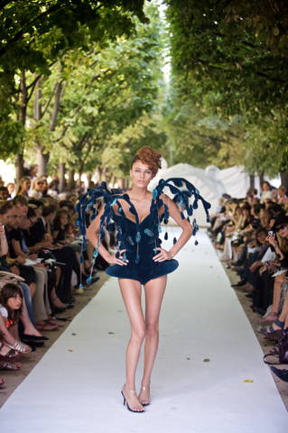 Par une douce matinée d’été, rendez-vous dans les jardins du Palais Royal pour un défilé inspiré par le monde aquatique. Livia S. Stoianova, Yassen V. Samouilov pour On Aura Tout Vu nous ont offert une collection féérique et originale sous forme de conte pour l’Automne-Hiver 2010-2011 sortant tout droit de la gueule grande ouverte d’un monstre marin en papier bulle.