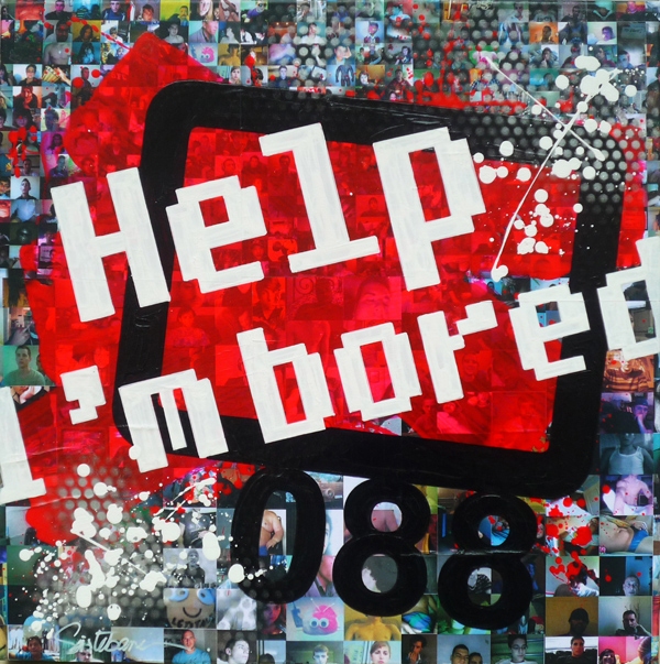 J’ai voulu démontré à travers ces tableaux le côté malsain de l’être humain : le voyeurisme, l’excitation et puis surtout comment les gens s’ennuient dans la vie en 2010. Parce que lorsque vous regardez toutes les captures d’écran que j’ai faites, vous ne trouverez que des têtes tristes, des gens tristes qui s’ennuient et qui sont souvent seuls. Et c’est un peu cette vision contemporaine en 2010 de la technologie et des médias de communication que j’ai voulu montrer.