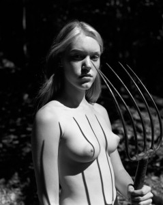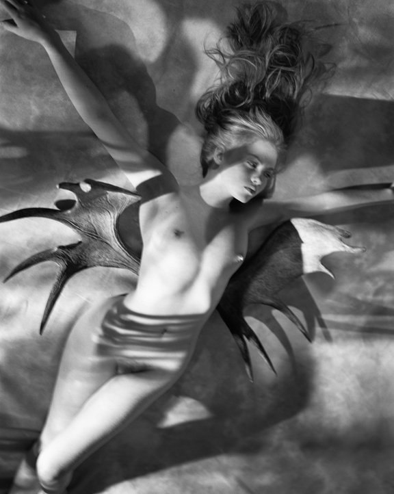 Mark Arbeit est celui qui propose le travail le plus conceptuel sur la lumière. A la fois fils spirituel d’Helmut Newton et assistant d’Irving Penn, son travail est également l’expression d’un langage du corps très puissant où la femme est très souvent réduite à l’expression d’un corps, le visage restant caché naturellement par la mise en scène ou à l’aide d’artifice. L’Anthurium Hat en un brillant exemple dans lequel le végétal habille la femme qui disparaît derrière la plante.