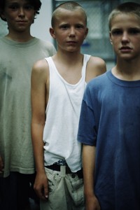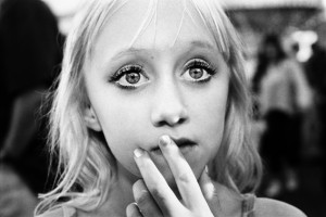 Just Loomis travaille beaucoup plus sur les émotions, sur la vie quotidienne. Il nous propose une série de photographies de l’Amérique profonde en couleur ou en noir et blanc. Et ses photographies sont criantes de vérité, comme un instantané de vie ultime : des situations, des lieux, des visages qui s’inscrivent dans ces terres de l’Ouest Américain. Mais loin d’être volées, ces tranches de vie nous sont offertes tant elles sont généreuses. Elles en deviennent fascinantes lorsqu’elles nous mettent face aux regards captivants, troublants d’intensité de cette Amérique profonde, telle cette photographie du brûlé.