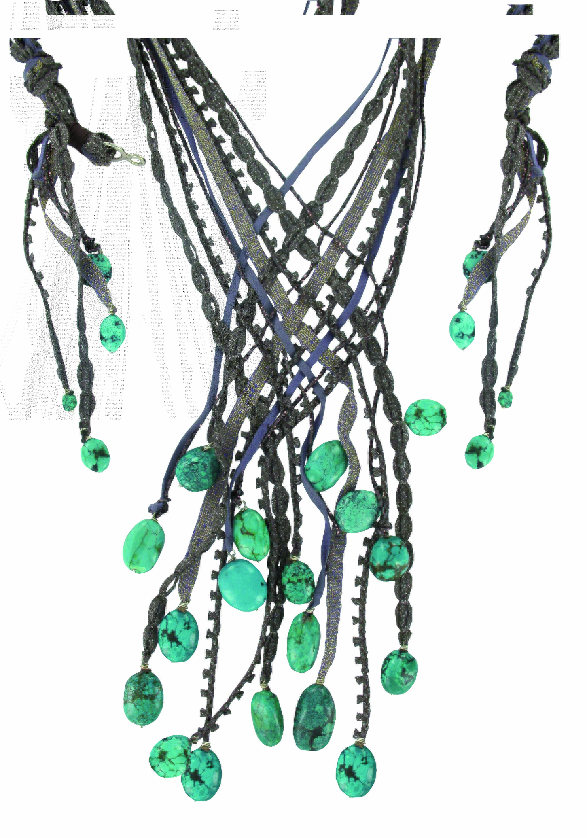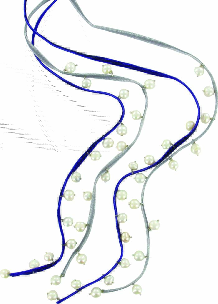 caractérisent ses créations : un collier ras-de-cou se transforme en écharpe