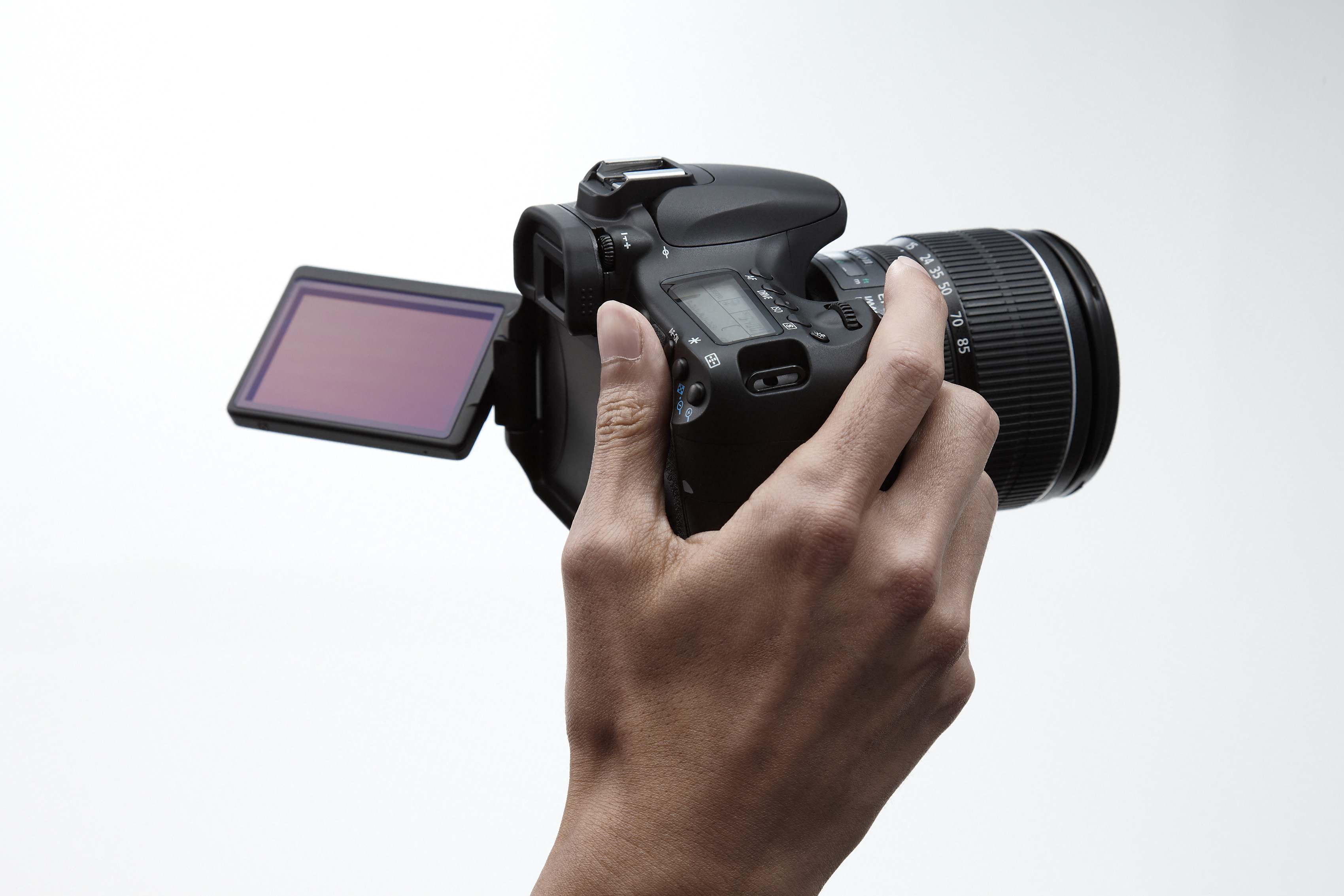 Le nouvel écran LCD orientable 7,7 cm (3 pouces) présente un ratio d’aspect 3:2 et une résolution de 1.040.000 points, ce qui accroît sa flexibilité d’utilisation et offre au photographe la possibilité de visualiser ses images avec une incroyable richesse de détails. Cet écran orientable facilite le cadrage depuis des points de vue difficiles, et lorsqu’il n’est pas possible de cadrer efficacement depuis le viseur, il peut être orienté pendant la visée par l’écran pour garantir une composition efficace. Réaliser des portraits d’animaux sauvages, cadrer en tenant l’appareil plus haut que la hauteur d’œil ou au niveau du sol est alors très facile. Le verre protecteur de cet écran bénéficie d’un traitement antireflet et déperlant (qui empêche l’adhérence des gouttes d’eau) qui améliore aussi la visibilité sous un soleil radieux et sous différents angles.