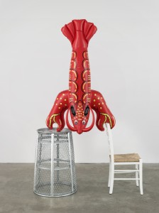 in the contrast between the trashcan and the chair on which the lobster finds its balance.