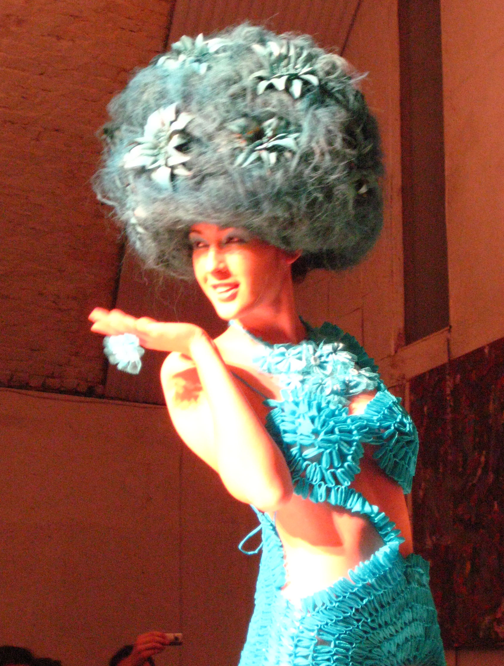 All in one shade of turquoise blue and in his signature silk material, the collection was very maritime, very seductive and very lively. Dresses seemingly woven to imitate fish nets, to shells, paper and flowers, used to accessorize the dresses were sewn together to illustrate organic shapes, adorned with headpieces in the same colour, and illustrating maritime fauna and flora, made the show a very unique experience in terms of construction and inspiration. Needless to say, it seemed to be a tribute to the sea, and to nature in some cases.