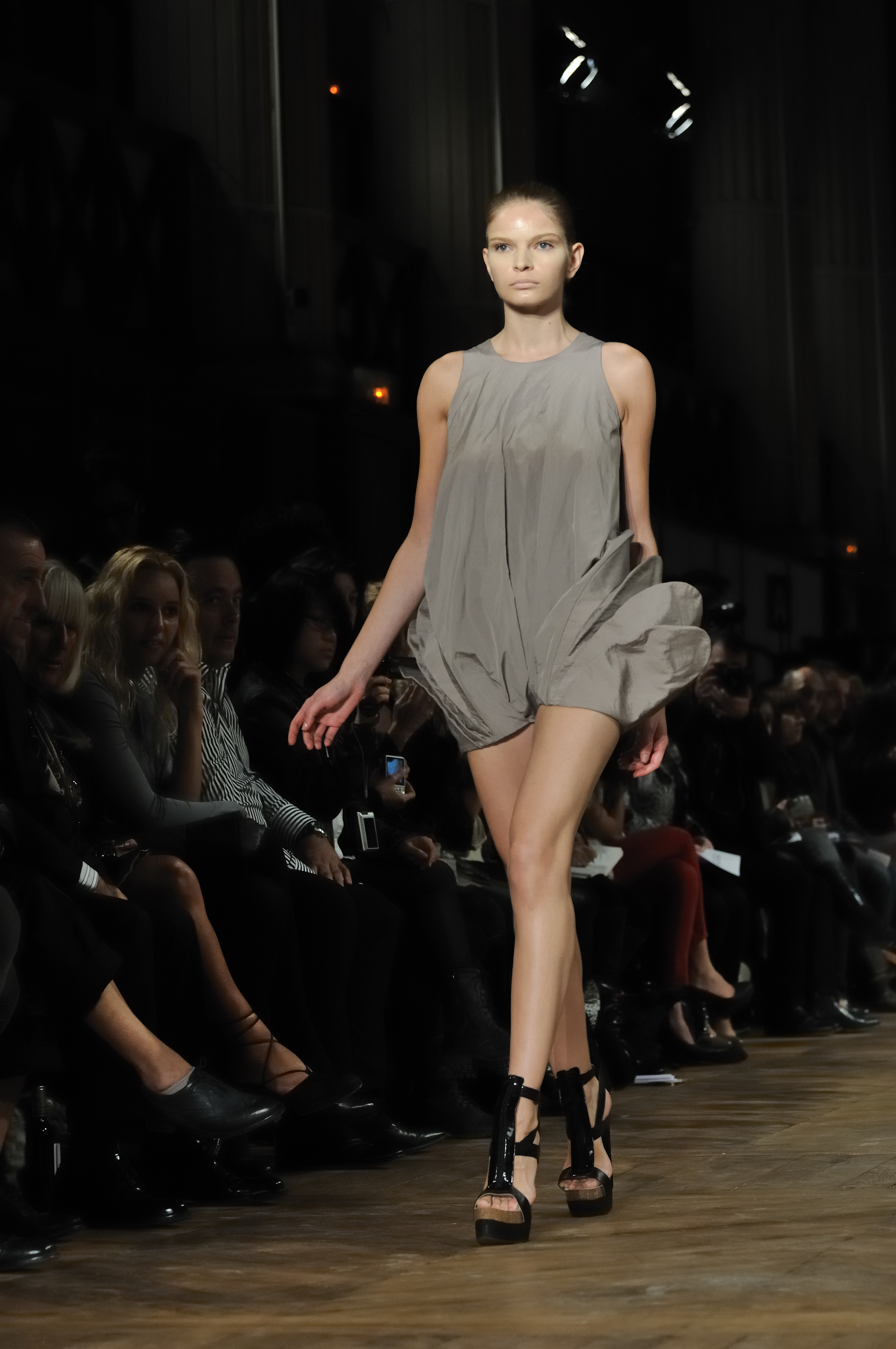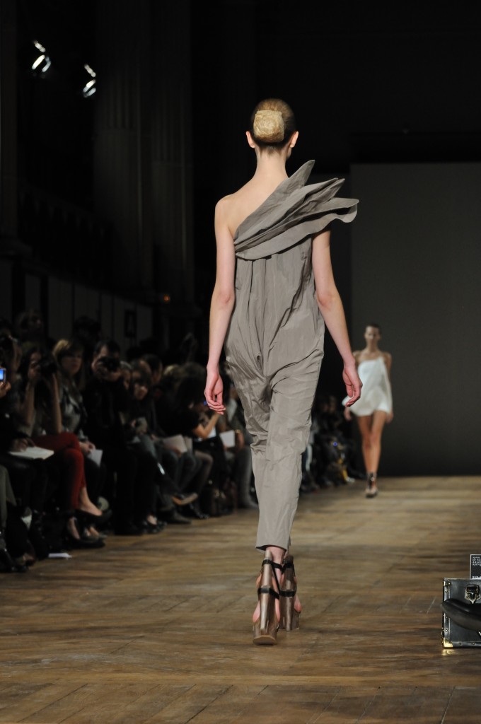 Pour son premier défilé, Amaya Arzuaga s’adresse à une femme résolument contemporaine s’affirmant dans le choix d’une garde-robe plutôt anti-conformiste, avant tout graphique mais sachant conserver un côté chic très naturel. Un petit bémol pourtant, les sandales plateformes sont absolument fabuleuses mais sont trop hautes, il est quasiment impossible de marcher gracieusement tant la démarche est alourdie. Un peu moins de hauteur aurait permis de sublimer les silhouettes.