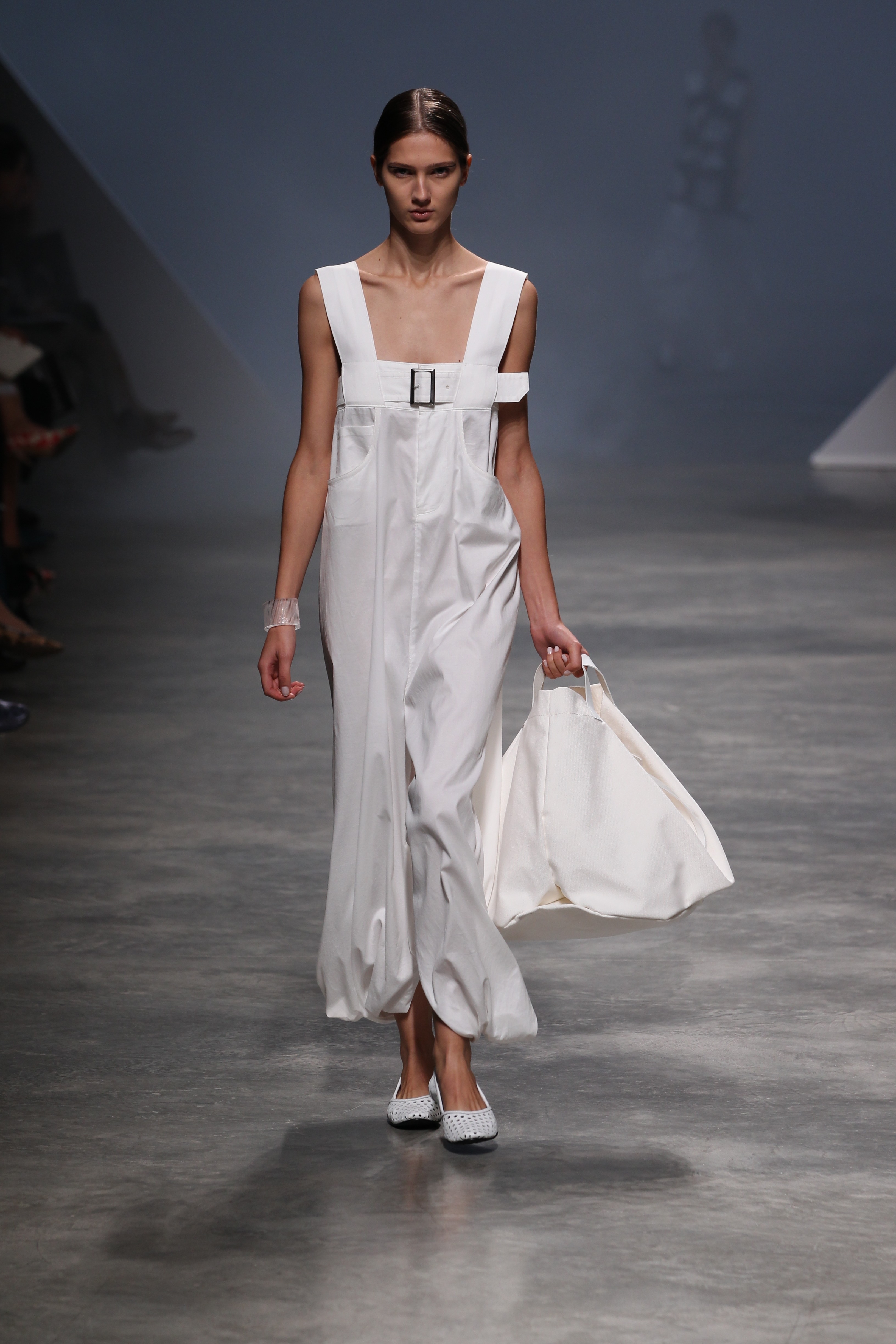 Robes simples en soie ou robes bustiers, shorts, jupes, pantalons amples se suivent pour une parfaite garde-robe pour l’été. De nouveau, la couleur prend possession de ces fantômes à travers des imprimés avant de revenir en variations de blanc, de noir et de gris, véritable exercice de style tant le sens du détail et de la texture est poussé à l’extrême.