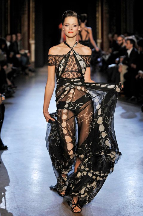 Et quelle meilleure inspiration pour son premier défilé parisien que la Parisienne ? Mais ce n’est pas de la Parisienne moderne dont s’est inspiré le créateur pour cette collection Printemps-Eté 2011, mais plutôt de la Parisienne d’antan, celle qui « s’habillait » pour sortir le soir. Inspirée par la Marquise Casati et le style sans égal de la Comtesse Jacqueline de Ribes, le créateur nous livre un formidable exercice de style sur une mode à l’élégance surannée mais nullement poussiéreuse.