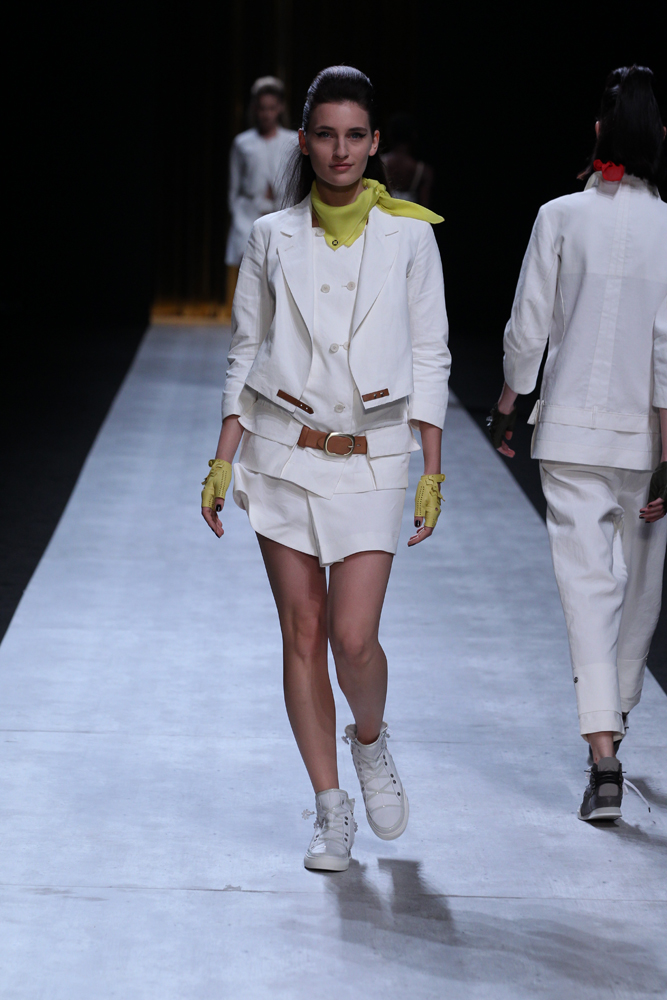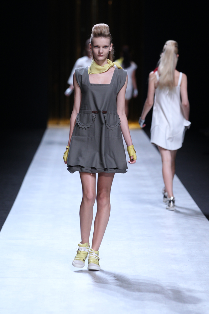 Lignes épurées, looks variés, petites robes, jupes, vestes plutôt streetwear, short et pantalons ponctuent cette collection Printemps-Eté 2011, dont le style urbain explose dans toute sa splendeur.
