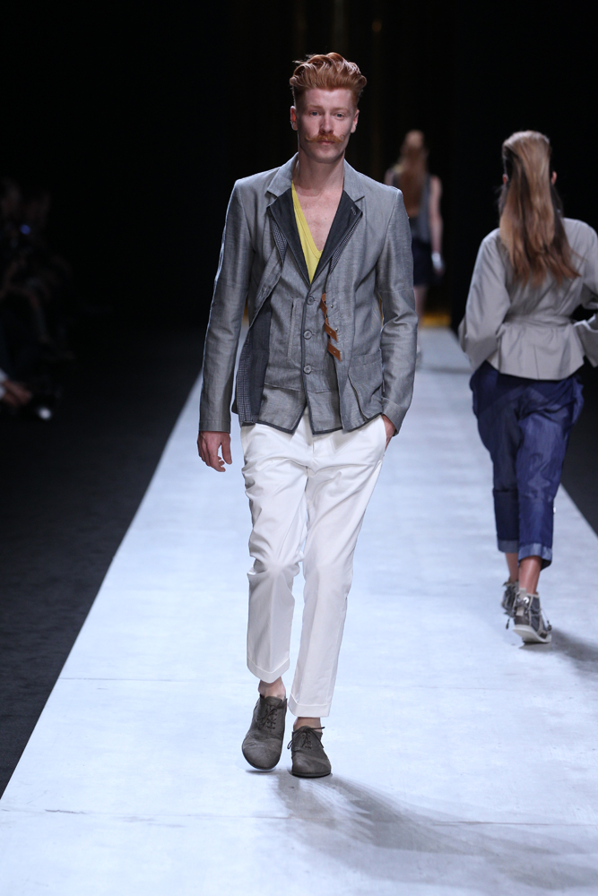Le couple de créateurs aime les traitements d’avant-garde. Le denim se veut novateur grâce à la technique Wattwash™, traitement laser économique. Coton mélangé, matières plume et stretch créent des silhouettes sans contrainte.
