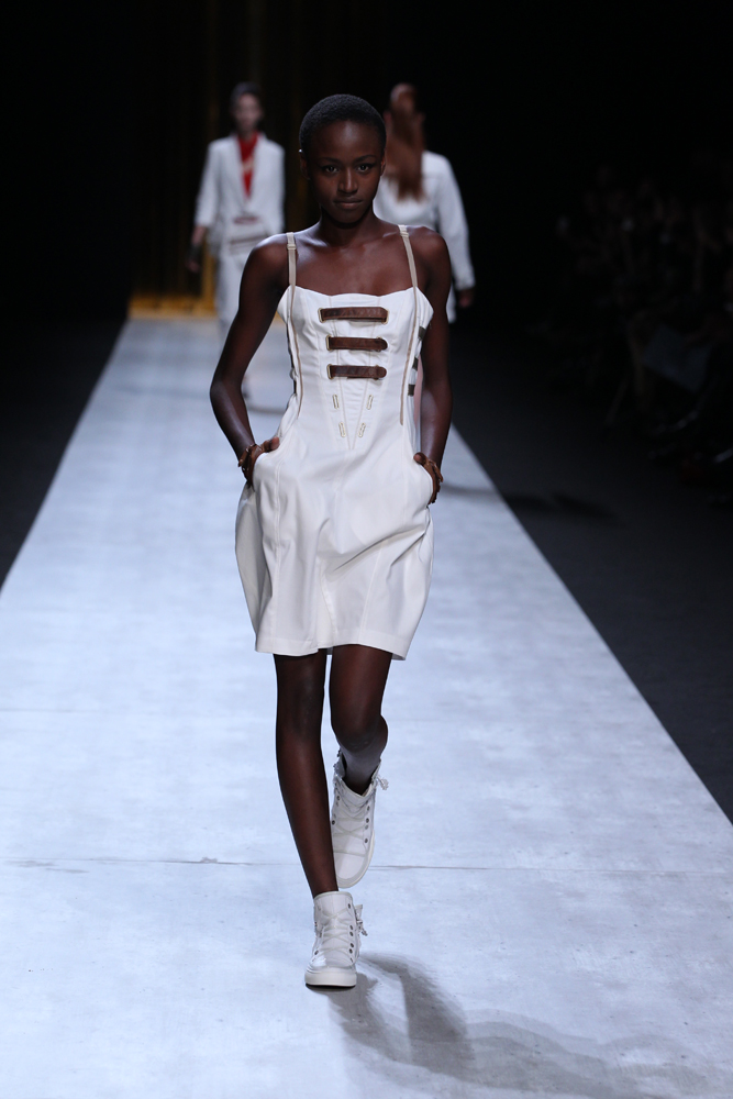 Gant de conduite aux mains, les silhouettes modernes empreintes de mémoire, de références et de liberté se succèdent, présentées par des mannequins s’amusant sur le podium et redéfinissent les codes d’une génération concernée et impliquée.
