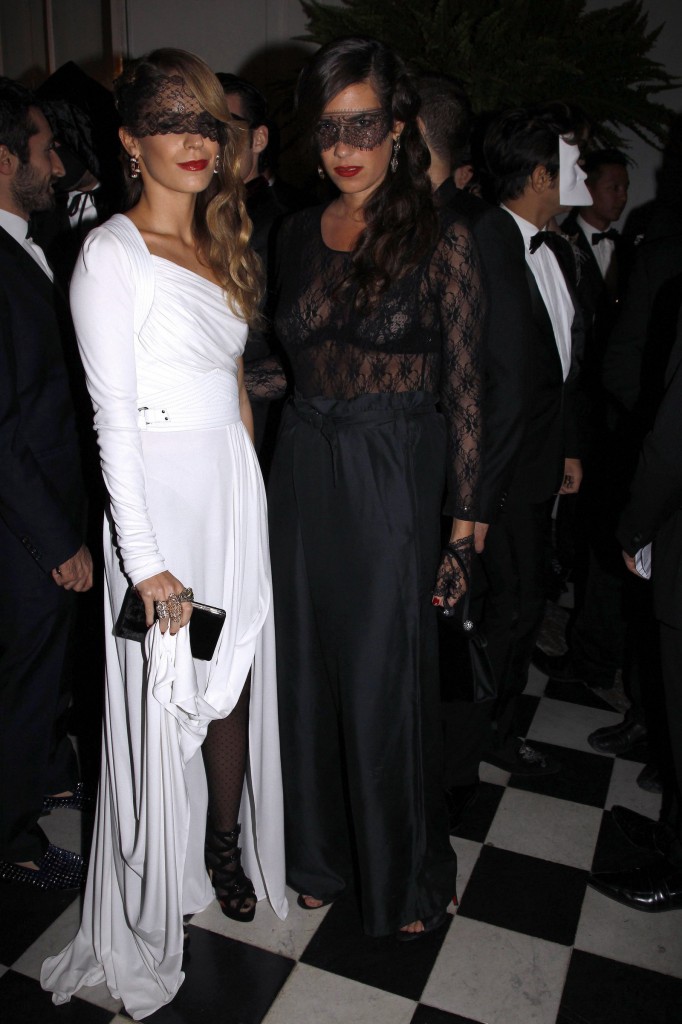 Betony Vernon, la créatrice de bijoux aux faux airs de Betty Page, porte une longue robe en dentelle noire rebrodée de perles tandis qu’Anja Rubik, le célèbre mannequin polonais, portait une longue robe noire en jersey avec bustier en cuir qui dévoile sans trop en montrer sa silhouette parfaite.