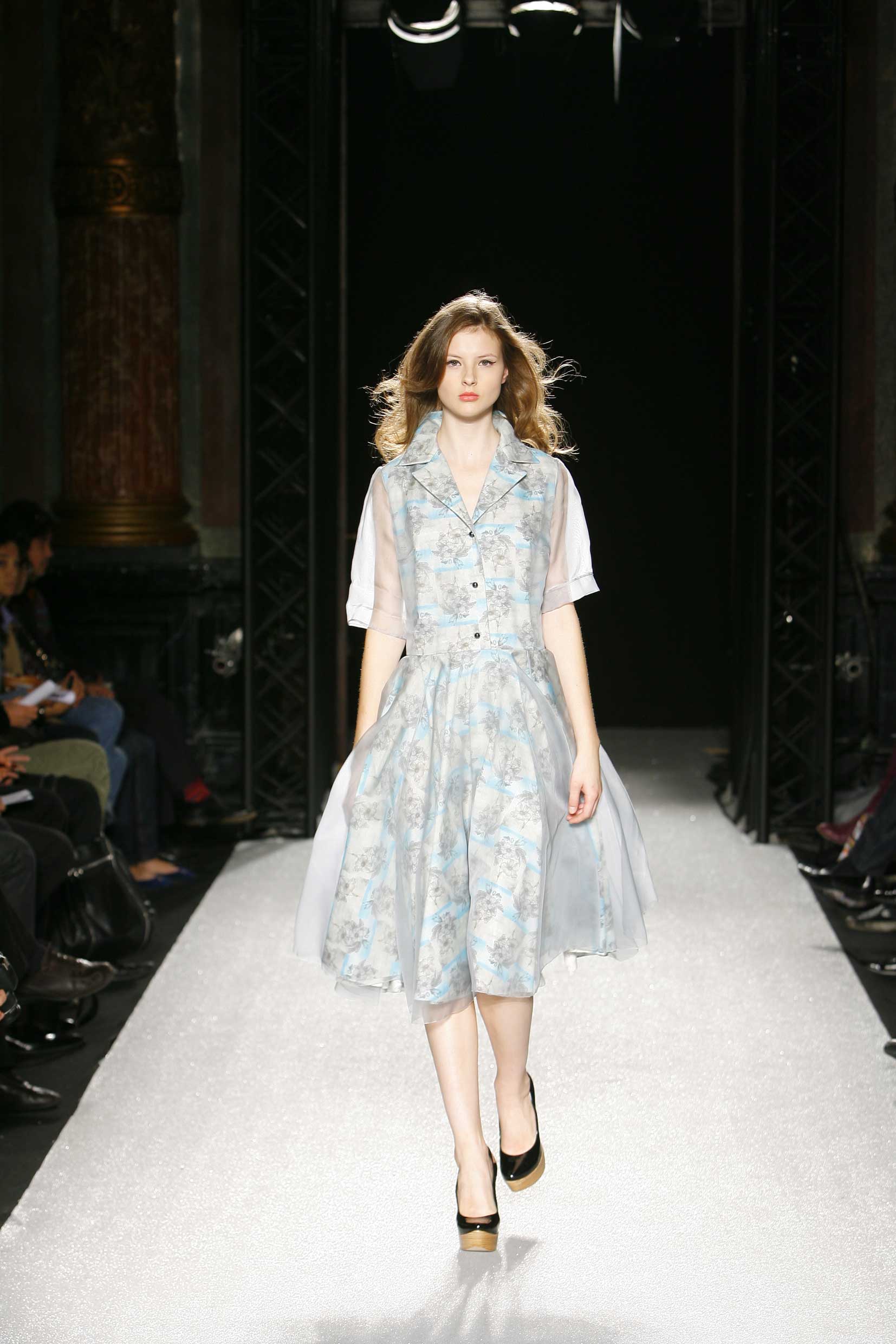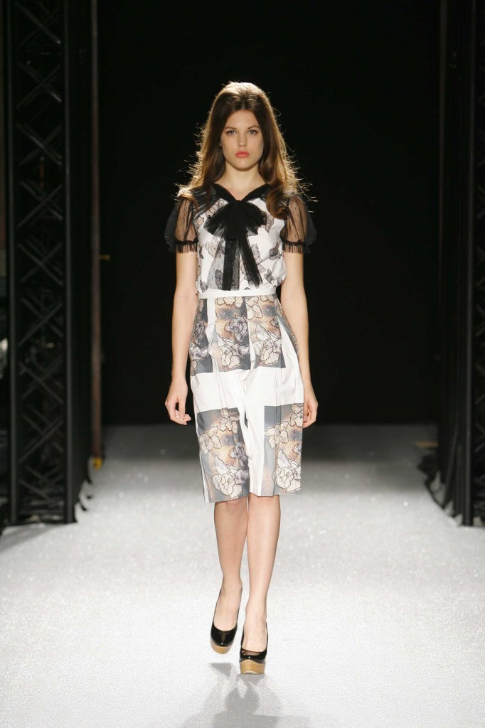 La créatrice finlandaise multiplie les détails. Fronces, plis, volants discrets et fine dentelle noire accompagnent des silhouettes d’un chic intemporel. Jupes, top et robes se parent d’organza recouvrant un nouvel imprimé de coton. Des fleurs entrelacées nuancées de rouge et de bleu sur une soie lavée confère sensualité et raffinement à de gracieuses robes trapèze, bustier ou aux encolures enrichies d’un nœud généreux.