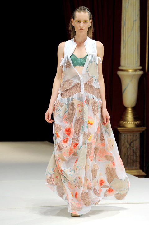 Toute en légèreté et en subtilité, Antonio Marras mélange les tissus et les imprimés floraux inspirés des kimonos antiques. Crêpe de soie, mousseline sablées, tulle, lin sauvage et soie composent une garde-robe aérienne. Quant aux tonalités de cette collection, tons beige, rouille, brique, sable, couleurs délicates et pastel s’harmonisent là où le blanc optique imprime sa patte.