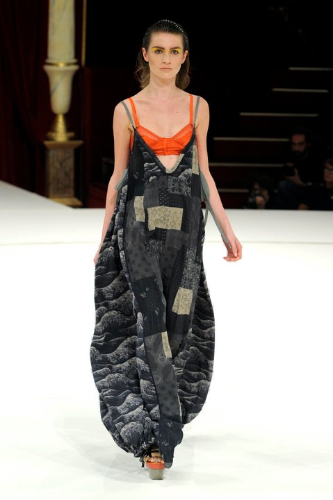 Grandes robes paysannes, vestes montées en coiffes dont le sommet laisse parfois entrevoir un chapeau d’homme, kimono porté en grand manteau de style mongole, jupes de babouchka se superposant, rien ne semble vouloir limiter la créativité d’Antonio Marras qui, aidée de la styliste Vanessa Reid, nous propose ainsi des silhouettes pleine de couleurs, de formes et d’imprimés qui, en nous faisant voyager dans ces fameuses archives réussissent à nous transporter vers des contrées plus lointaines.