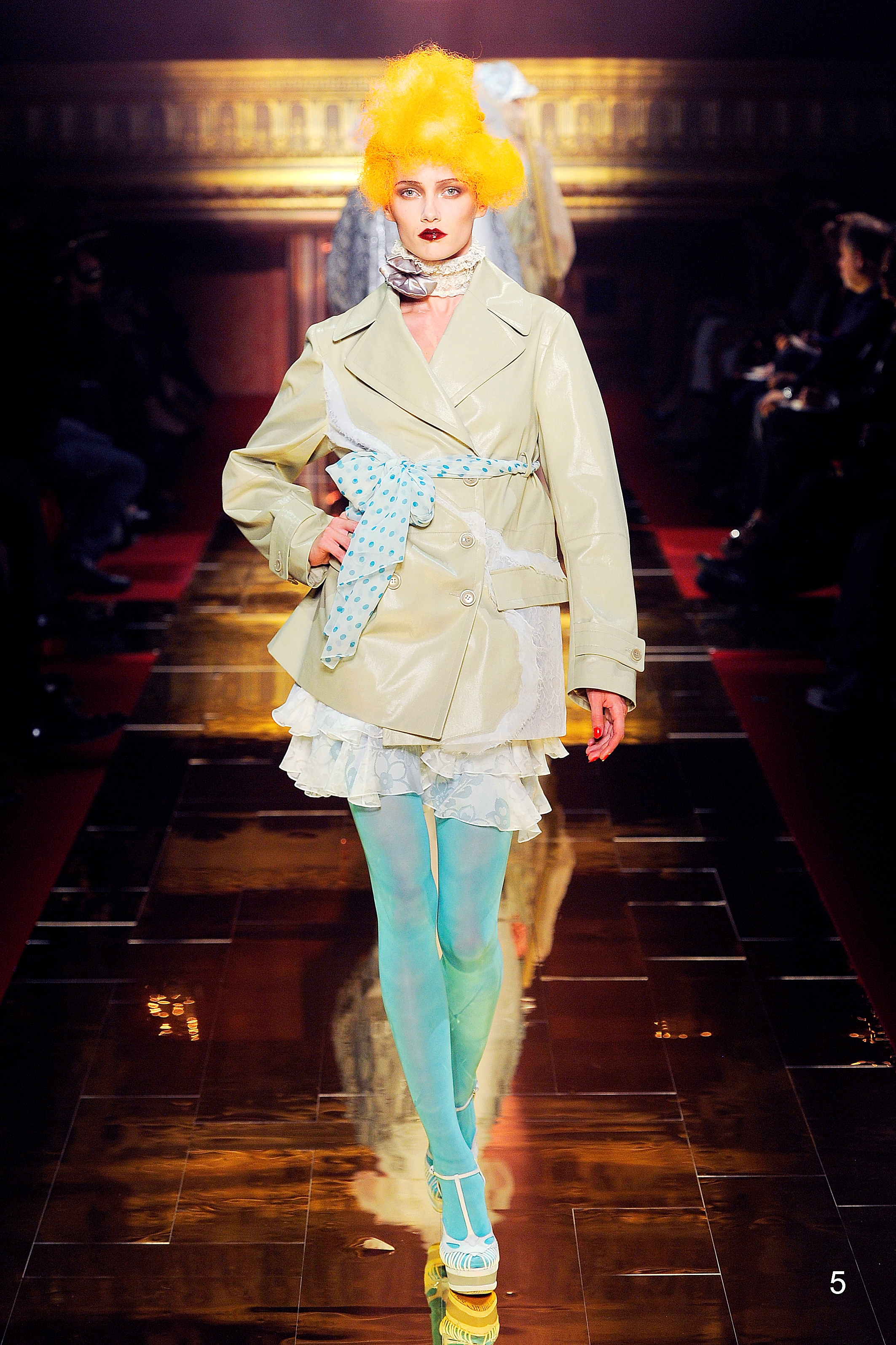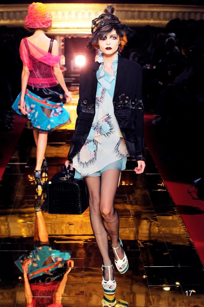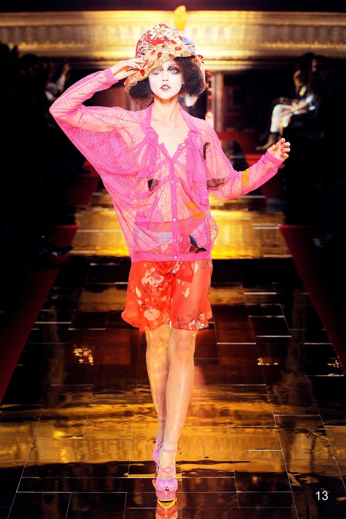 Le cadre enchanteur de l’Opéra Comique était le lieu idéal pour présenter la collection Printemps-Eté 2011 de John Galliano. Dans une atmosphère intimiste, les muses du designer perchées sur des talons vertigineux ont défilé sous les moulures d’or du théâtre dans une mise en scène mettant en valeur l’extrême féminité de silhouettes baroques.