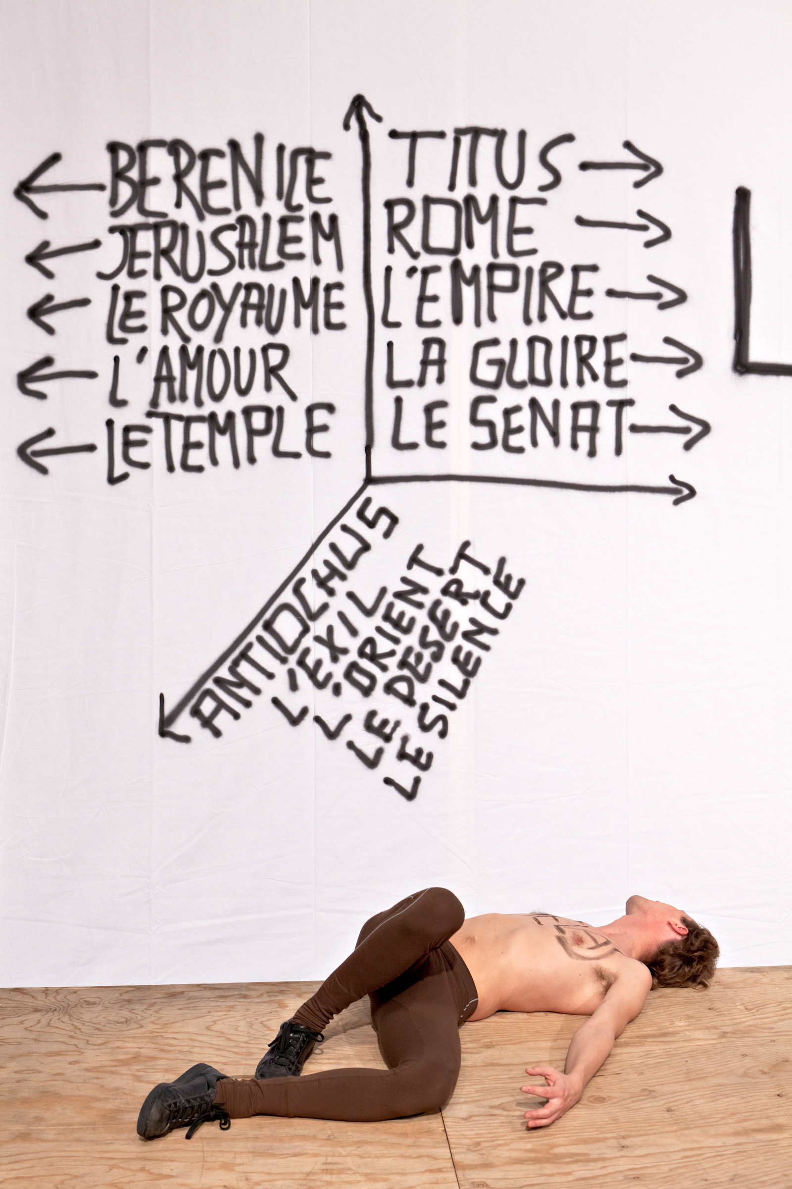 Une origine. Trois flèches, trois personnages, trois directions. Un trio pris dans le piège de la raison d’Etat. Malgré leur amour réciproque, la loi romaine interdit Bérénice, princesse de Palestine, d’épouser Titus, empereur de Rome. A quelques heures de leur séparation, Antiochus, amoureux en secret de Bérénice, décide de lui dévoiler ses sentiments. En vain. Dans cette pièce magnifique de Racine où se tissent et se détissent les destinées, Gwenaël Morin parvient à mettre en scène la déchirure de l’amour. Pas d’artifice. Un décor de bric et de broc. Pas de costumes. Des gestes précis. Une diction sans apprêt. C’est avec le verbe que l’on joue, que l’on aime, que l’on meurt devant une assemblée de spectateurs qui devient juge et partie.